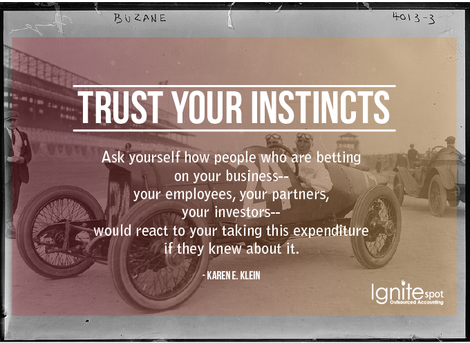 At the end of the day, you want your employees, your investors, and your conscience to feel good about how your using that company card. If you've already won cash investments, prove to your investors that they can trust you to keep the personal vs. business expenses clear and free of each other. You owe it to everyone involved with your company to keep it all separate.